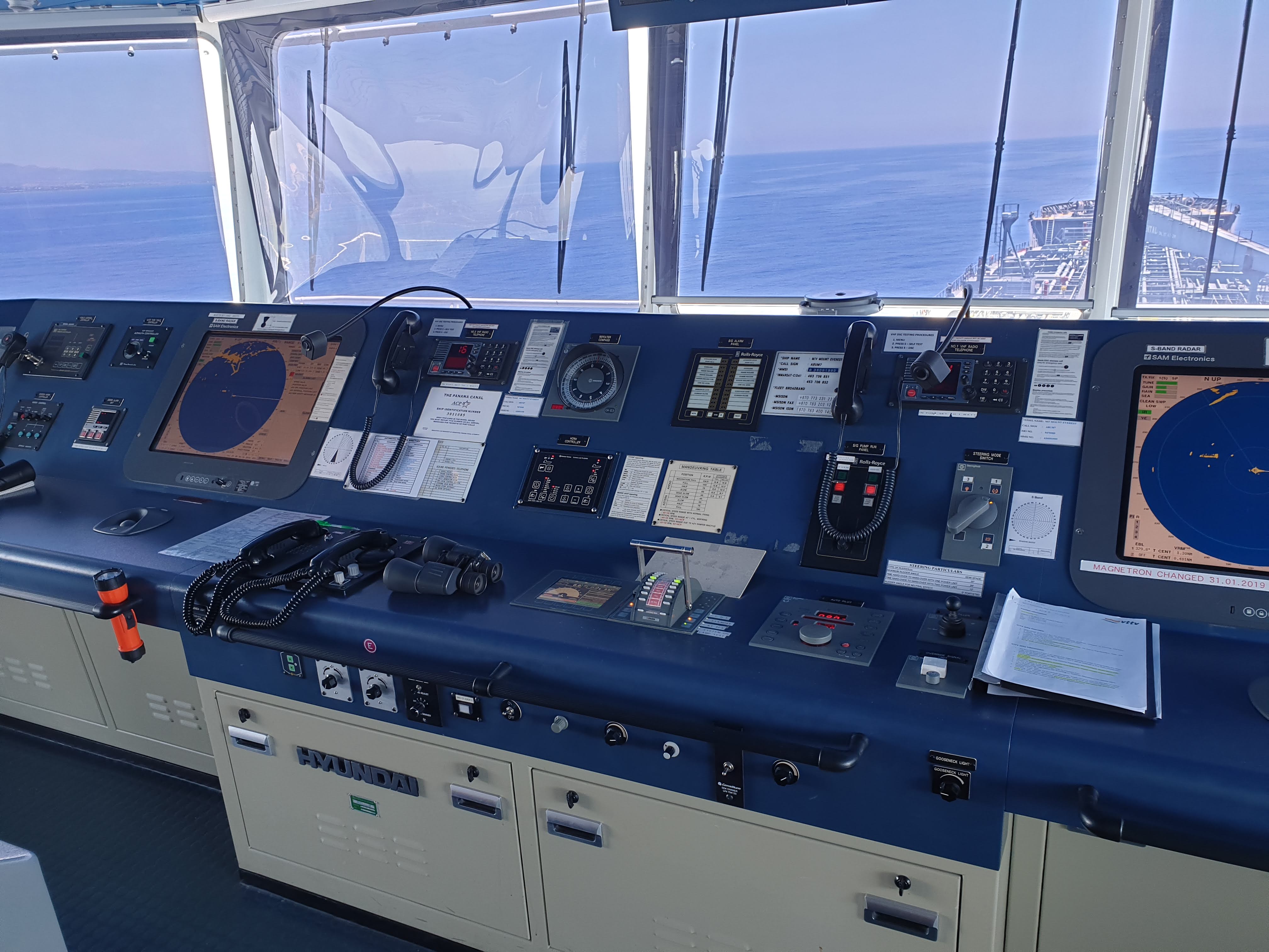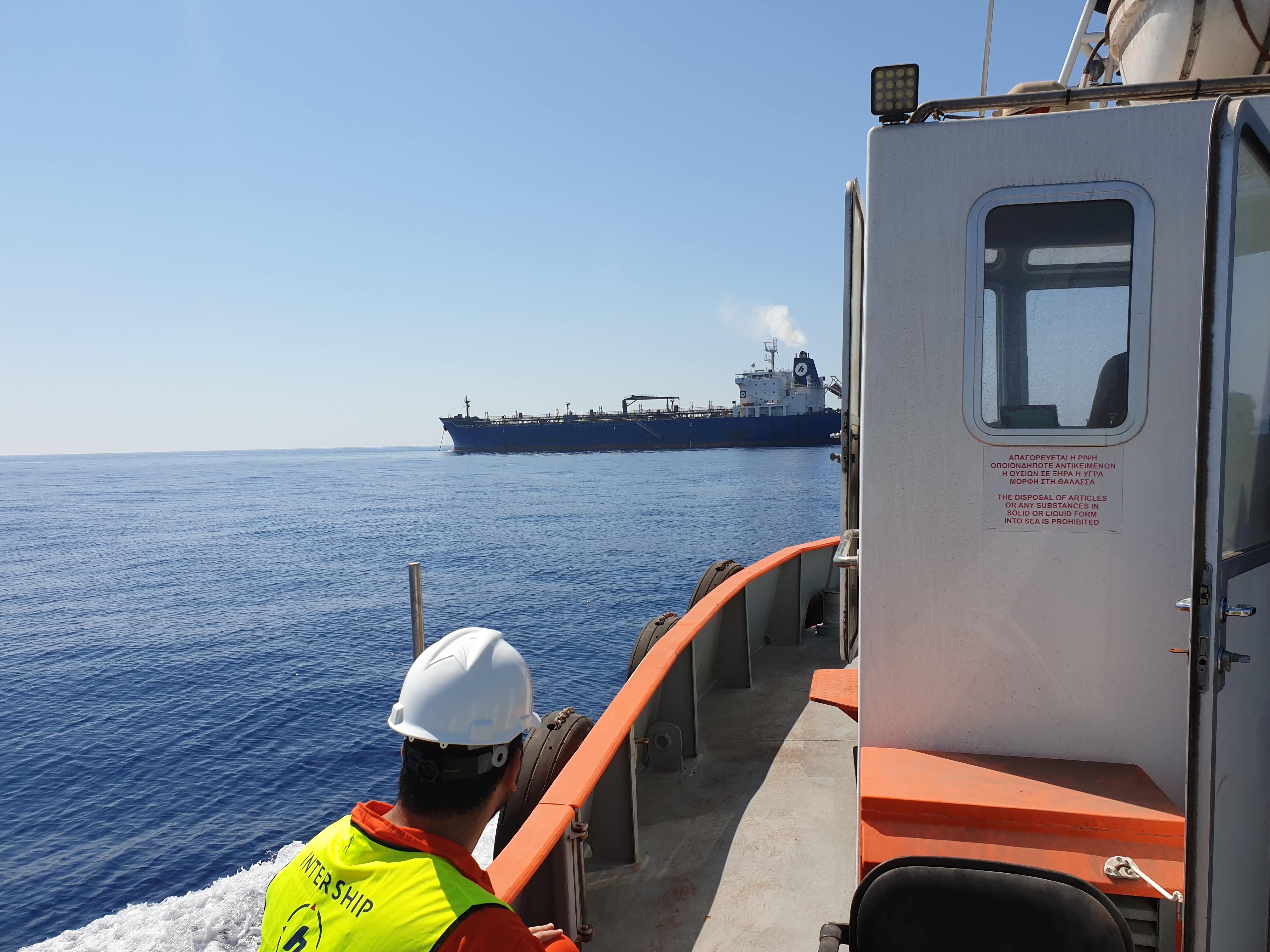On Tuesday the 23rd of July, Mr. Patsalides Kyriacos, Associate Director of Cyprus Maritime Academy visited the oil tanker “Mount Everest” of Intership Navigation Company at Vassiliko port in Limassol. This visit lays within the framework of collaboration between the Cyprus Maritime Academy and renown shipping companies based in Cyprus. The purpose of this visit was to gain valuable information regarding the operation of the specific type of vessel as well as the process being followed during the on-loading and off-loading of hydrocarbons at Vassiliko terminal. An extensive tour was held along the vessel’s sections, including the Bridge of the ship where all navigation systems are at place, the engine room along with the generators and the pumping system as well as the deck of the ship. An important part of the tour was the briefing on the work responsibilities of the Cadet officers (deck and engine) during their practical training on board.